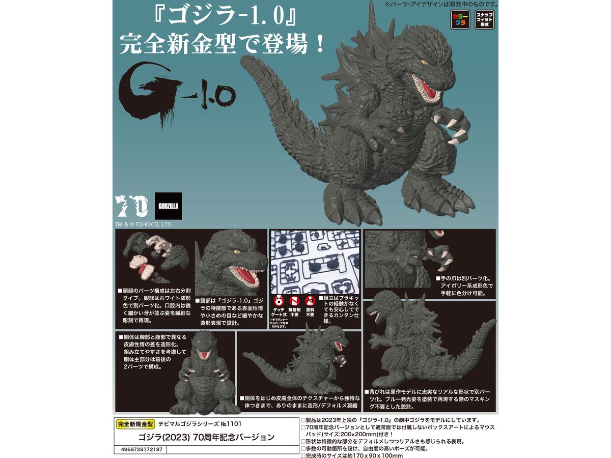 「哥吉拉-1.0」現已推出全新模具! 該產品以2023年上映的電影「哥吉拉-1.0」中的哥吉拉為原型。 70週年紀念版附帶一個滑鼠墊(尺寸:200 x 200毫米),上面印有普通版中沒有的盒裝藝術圖案! 形狀的表達方式給人一種真實感,同時對最獨特的部分進行變形。 可動部位眾多,可擺出各種姿勢。 完成後的尺寸約為 170 x 90 x 100mm 頭部分為左、右兩部分。 眼球採用白色鑄造,並且是獨立的部分。 嘴巴內部經過精心雕刻,重現了一排排鋒利、細密的獠牙。