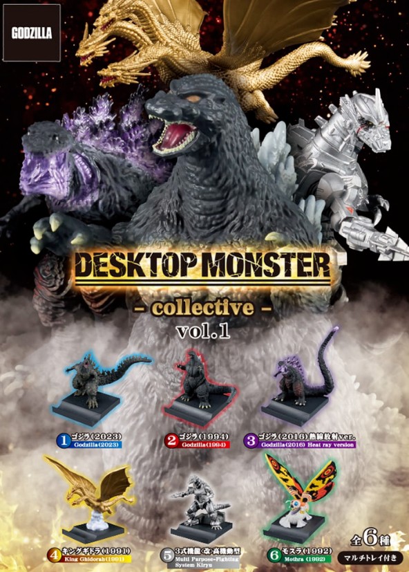 「DESKTOP MONSTER」系列首款收藏品「DESKTOP MONSTER -collective-」隆重登場! 首批陣容包含六款模型:哥吉拉(2023)、哥吉拉(1994)、哥吉拉(2016)熱射線版、王者基多拉(1991)、桐生三式(改良型)高機動型、摩斯拉(1992)。 底座固定銷可拆卸,可依底座上的針孔自由定位。 組合各系列模型,打造專屬於你的怪獸戰鬥。 底座採用多托盤設計,方便收納筆等小物。 產品尺寸:W100xH100xD100mm(含底座) 。 材質:主體:PVC、ABS;底座:ABS 。
