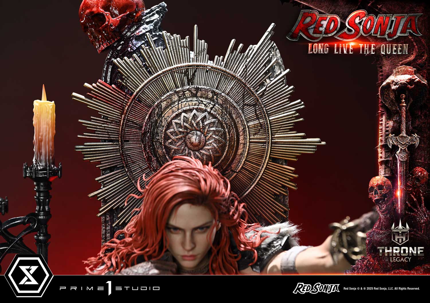 紅索妮亞(Red Sonja)最初登場於 1973年 Marvel Comics 出版的《Conan the Barbarian》(野蠻人柯南)第23期,由作家 Roy Thomas 與藝術家 Barry Windsor-Smith 改編自 Robert E. Howard 於1934年短篇小說《The Shadow of the Vulture》中的角色形象。Prime 1 Studio 的本作《Red Sonja: Long Live the Queen》靈感取自官方藝術家 Ian MacDonald 的50週年紀念插畫,呈現她歷經無數戰役後,終於征服王座、成為「血與鋼鐵的女王」的瞬間。
