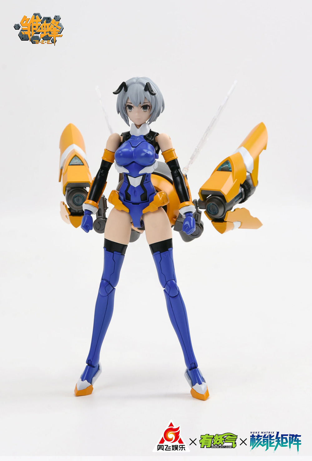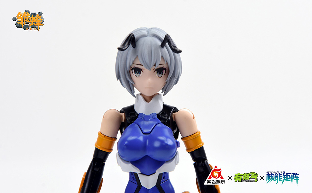 產品高度:約16cm 產品配置: 身體×1 印刷表情臉部×3 空白臉部×3 可替換裝甲手腳×1對 可替換素體手腳×1對 “BEE” 背包×1 武器×8 手型×6對 PVC材質頭髮×1 絨毛項圈×1 水貼×1 水晶貼(瞄準鏡)×2 地台×1 說明書×1