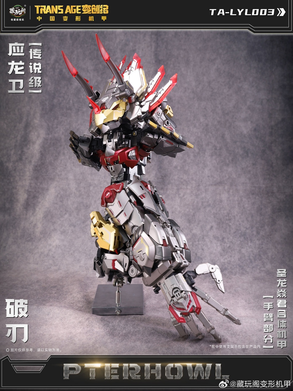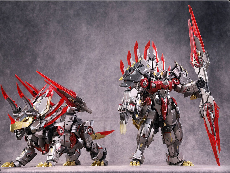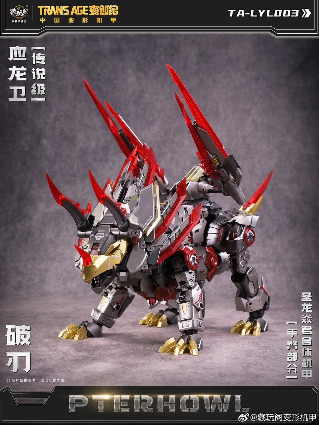 藏玩閣·變創紀之應龍衛【破刃Breakhorn】震撼來襲!!! 破刃,是應龍衛隊中的銳利的矛; 刃角如其名,負責衝鋒陷陣,正面進攻打開缺口; 攜帶雷角龍鑽槍讓其衝擊宛若山崩地裂般勢不可擋; 破刃擁有厚重的頭部與肩頸護甲作為防護, 用高速旋轉的鑽槍撕開敵人防線是刃角擅長的事。 三角龍破刃,兼備厚重的防禦以及強勁的衝擊力, 衝破重重阻擋友軍的阻礙!