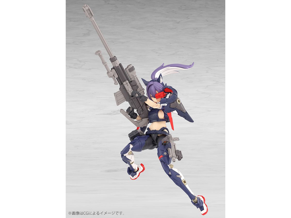 - 「機械少女系列」素體擁有驚人的可動範圍,可以擺出自然的持槍和坐姿。