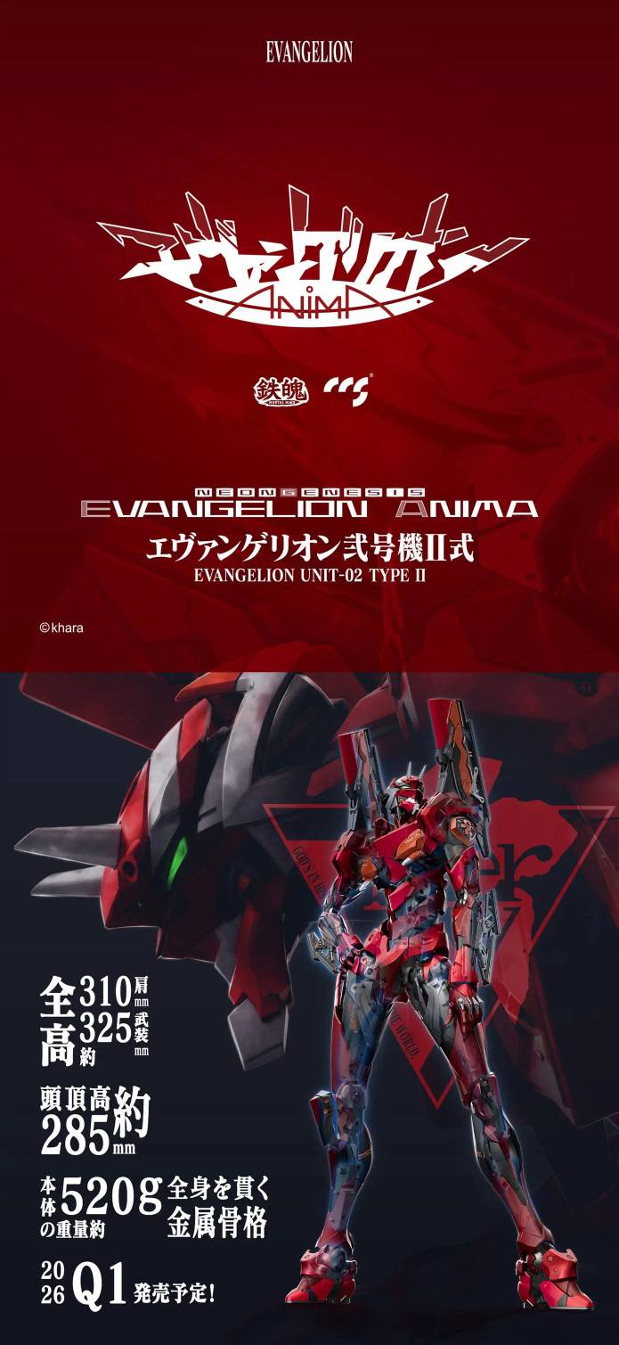 CCSTOYS「鐵魄(MORTAL MIND)」推出『福音戰士ANIMA』的「福音戰士二號機II式」! 機體配色以鮮豔的紅色為主基調,兼具躍動感與厚重的高級感。透過研究並再現人體骨骼與肌肉運動而獨創的可動關節結構,在確保廣泛可動範圍的同時,實現了自然且充滿張力的造型姿態。此外,不僅配備了可裝載於背部的無線供電裝備「微波雷射供電整流天線」,還附帶「新型步槍Powered Eight」「N2炸彈掛架」「朗基努斯之槍」等象徵性豪華武裝。