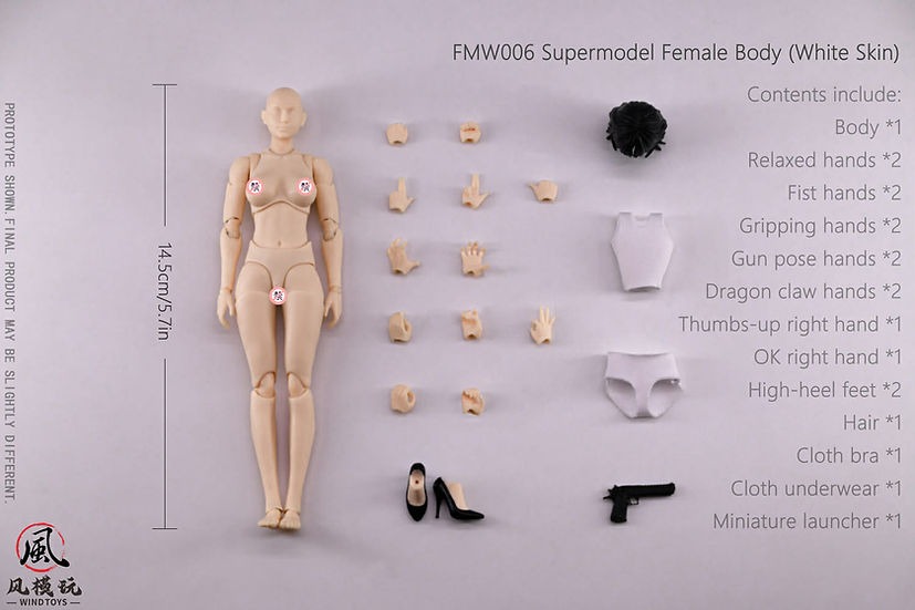 比例:1/12 尺寸:高約14.5cm/5.7in 內容物包含: 素體*1 放鬆手*2 握拳手*2 握持手*2 比槍手*2 龍爪手*2 點贊右手*1 OK右手*1 高跟腳型*2 頭發*1 布制內衣*1 布制內褲*1 微縮發射器*1 預購全額 : 870元(單款) 運費 : 超商店到店45元,宅配65元,單次出貨金額滿兩千免運 預購訂金 : 單項商品一組免訂金,單項商品兩組含以上請支付一組訂金200元 預購截止日期 : 2026年3月26號