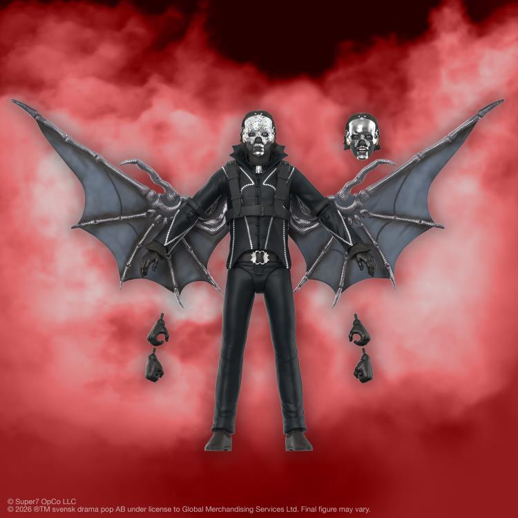 這款人偶高7吋(約18公分),擁有19個可動關節,可擺出各種姿勢。配件包括兩個可替換頭雕(分別配有寶石面具和銀色面具)、蝙蝠翅膀、麥克風支架以及多款可替換手型。包裝採用Ghost美學為靈感的櫥窗禮盒,這款人偶絕對是您收藏的完美選擇。趕快入手這款Papa V Perpetua ULTIMATES!人偶吧!別讓錯過的機會永遠困擾著您。
