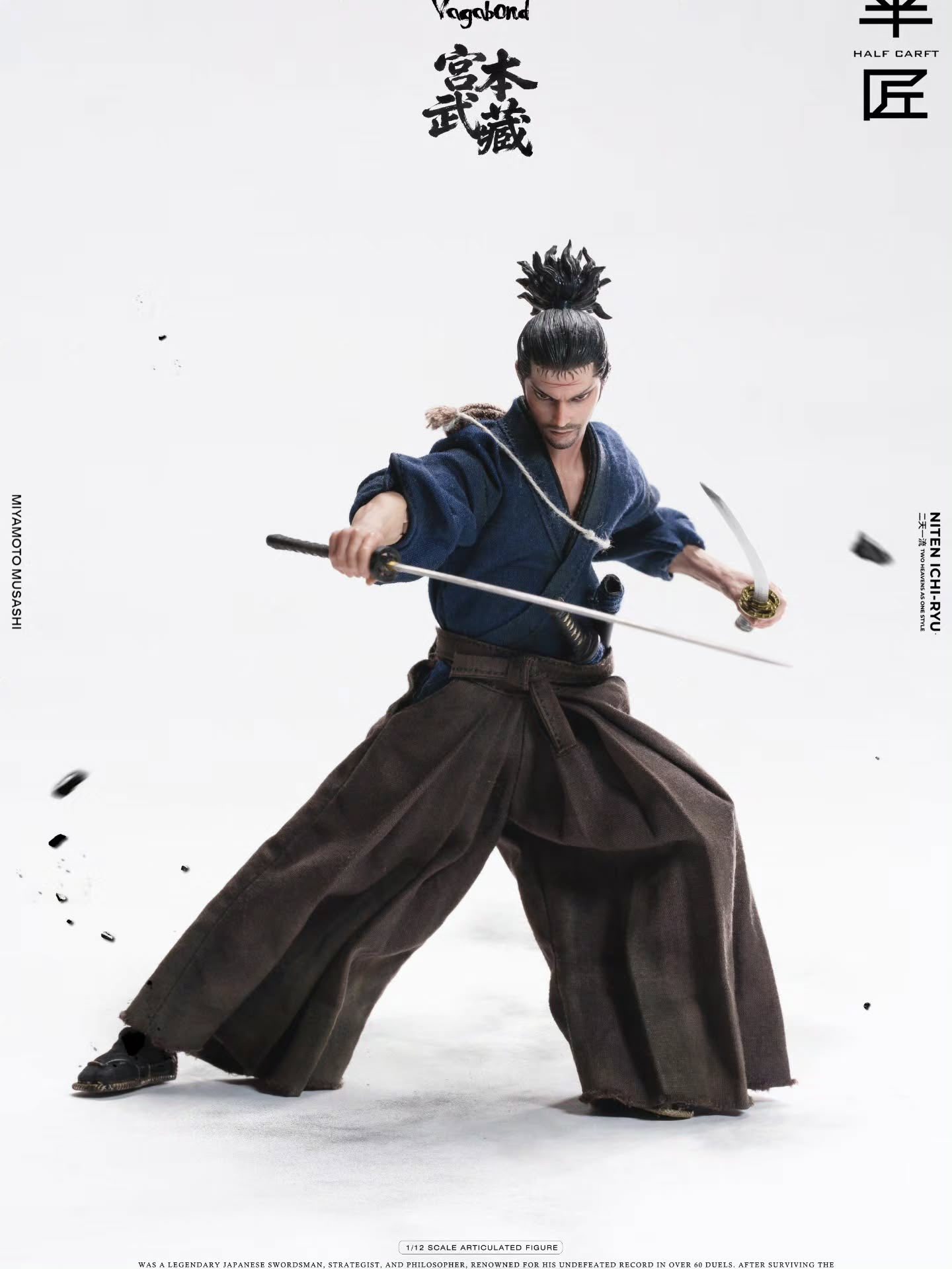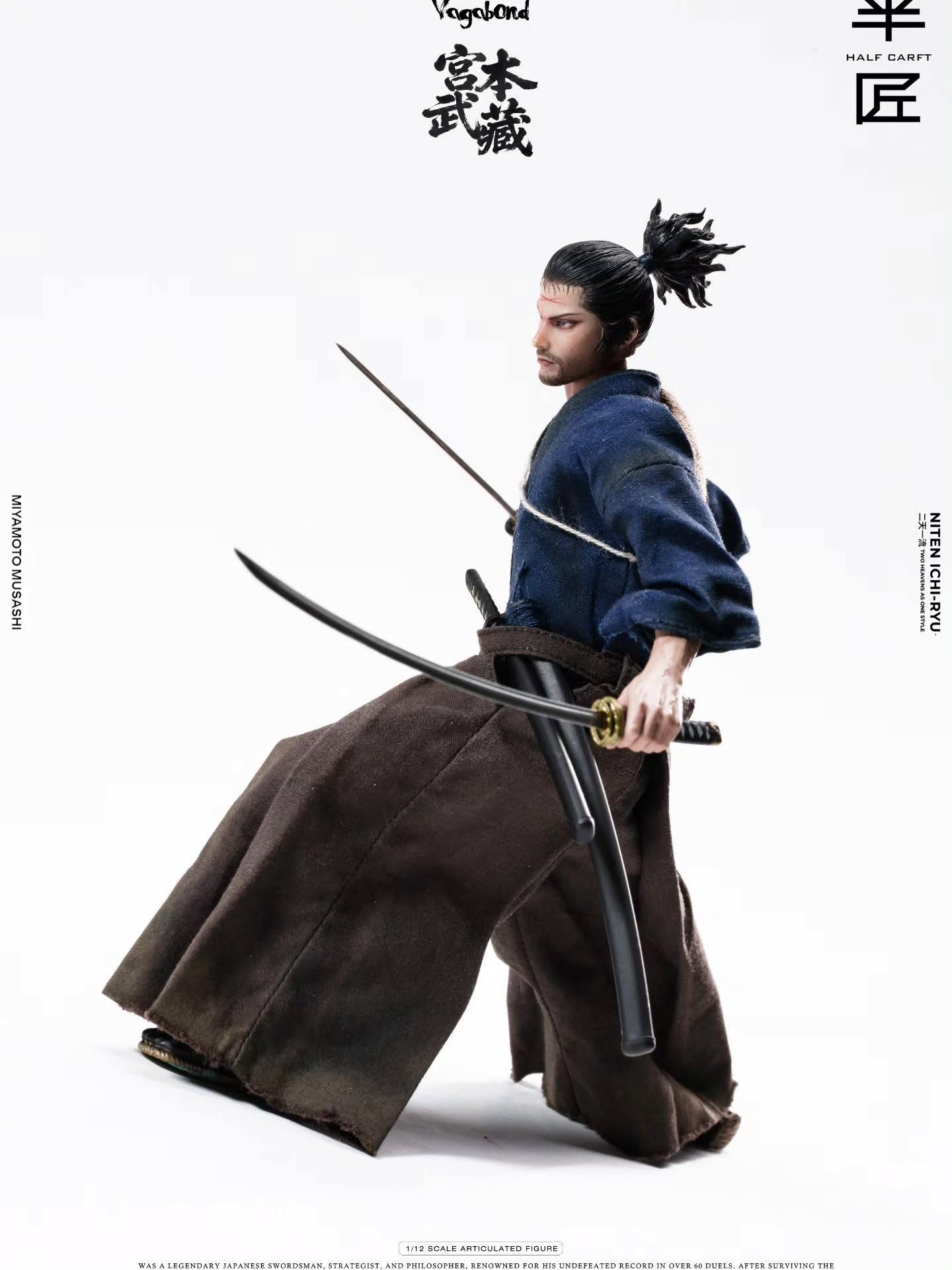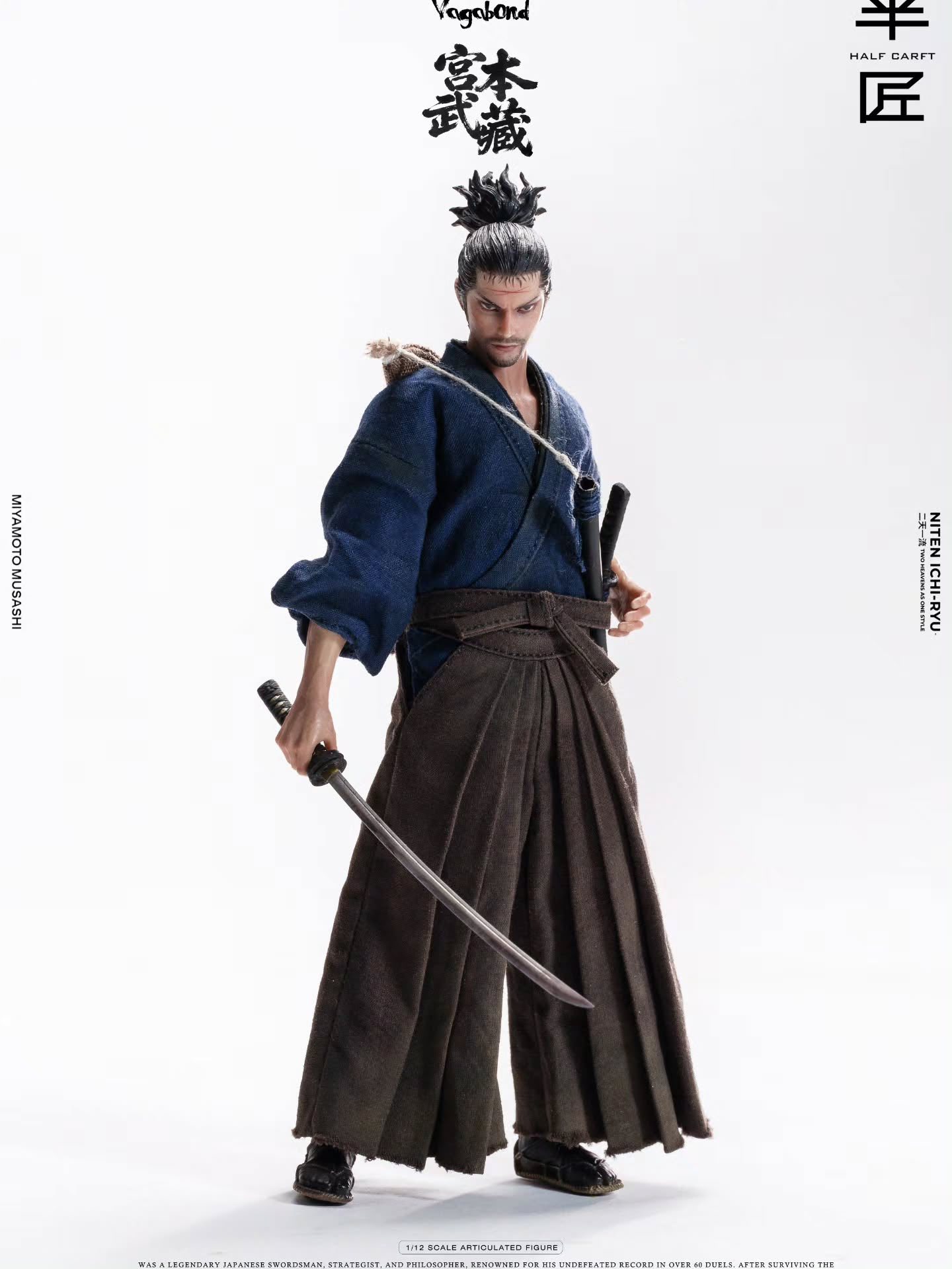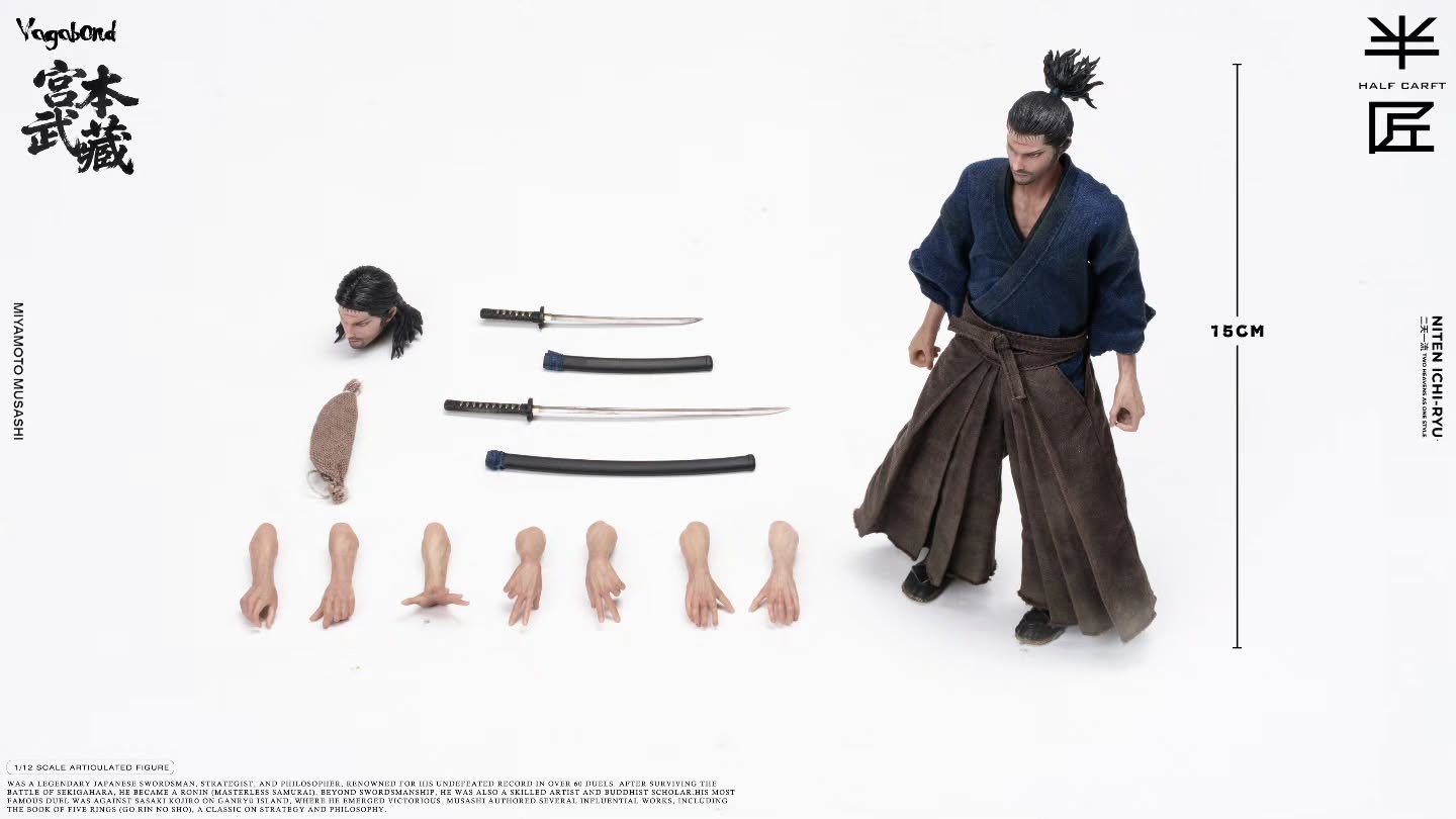 半匠 1/12 宮本武藏 可動人偶 1/12比例的身體與30個關節點 大約15厘米 ============================== 配件:2個頭雕,9只可替換有手臂的手型 服裝:一套做舊浪人服裝,一個行囊 武器:兩把武士刀 預購全額 : 2300元 運費 : 超商店到店45元,宅配65元,單次出貨金額滿兩千免運 預購訂金 : 單項商品一組免訂金,單項商品兩組含以上請支付一組訂金400元 預購截止日期 : 2026年5月3號