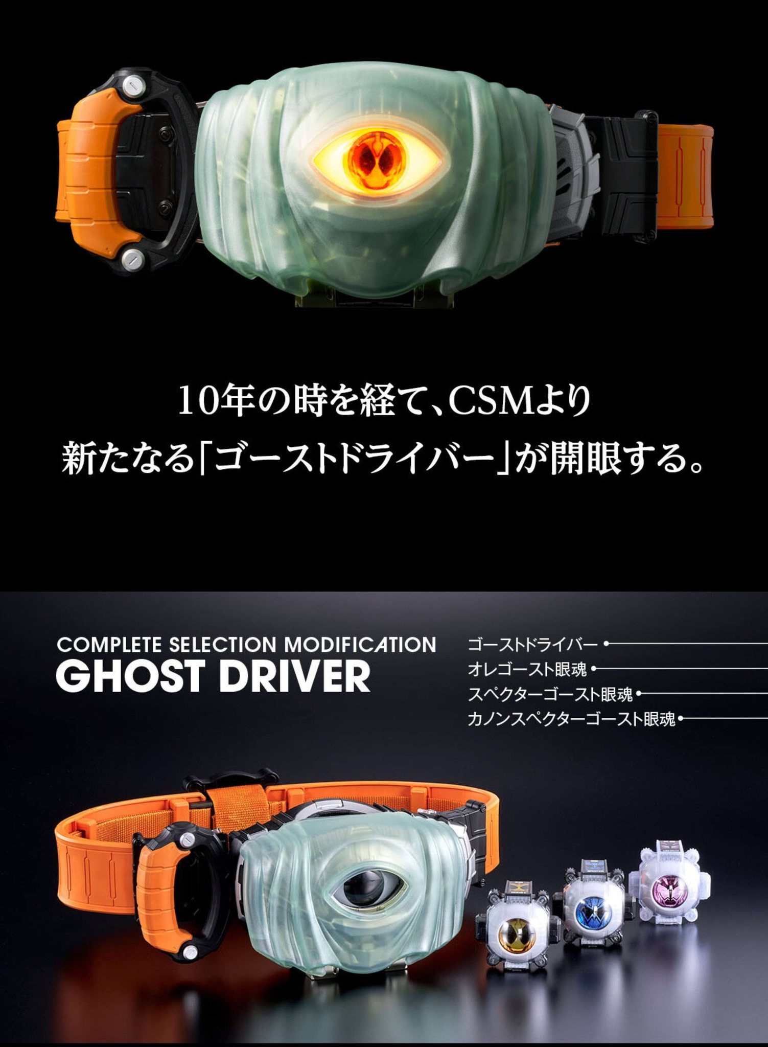 套裝包括從DX版進行了多項升級的「Ghost Driver」,再加上附有「Ore Ghost眼魂」「Specter Ghost眼魂」「Kanon Specter Ghost眼魂」。享受3位幪面超人的變身再現。