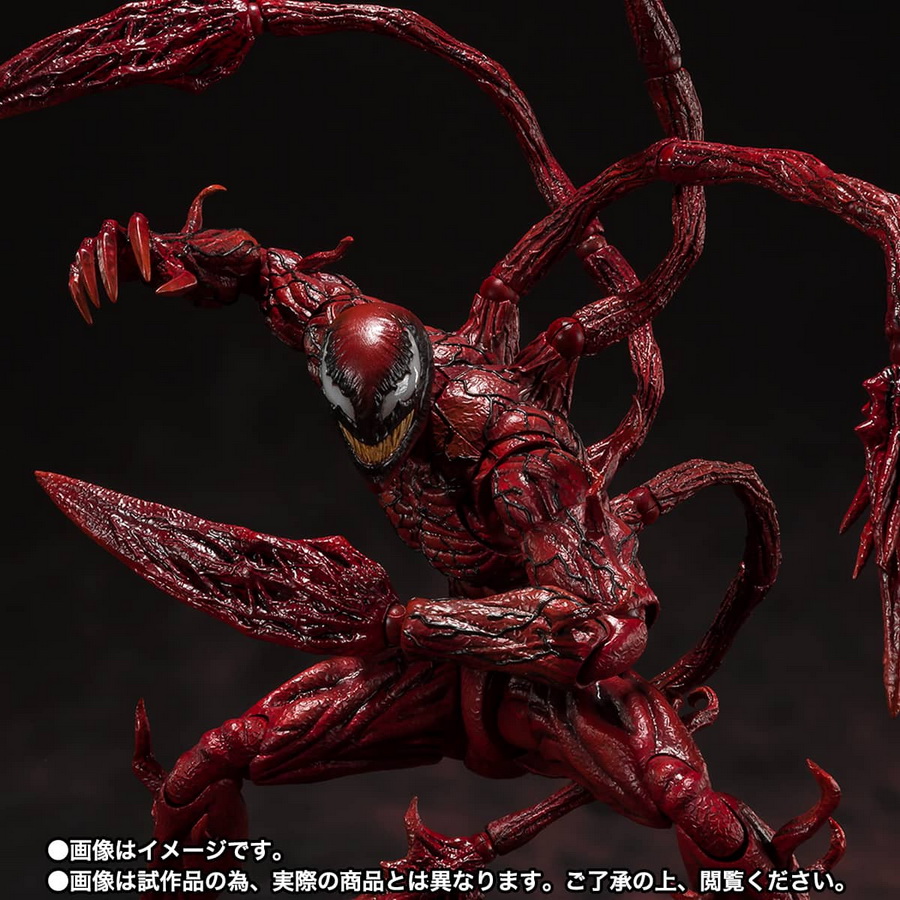 S.H.Figuarts カーネイジ(ヴェノム:レット・ゼア・ビー・カーネイジ) PVC&ABS製可動フィギュア 全高:約215mm 商品内容:本体(背部触手パーツ含む)、交換用左手首4種、交換用右手首3種、交換用頭部、交換用触手先端3種 発売元:BANDAI SPIRITS